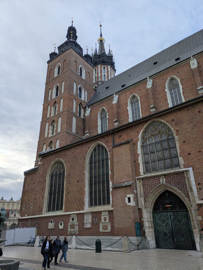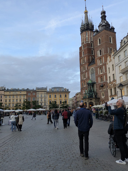 We left the hotel and headed into the old town where we met our tour guide Joanna. Who again was absolutely outstanding. We started the tour just outside the iconic apartment from Schindler's List we then walked around the outside of the castle to the Dragon of Krakow. Joanna told us about the mythology behind the dragon which was very interesting. Then it breathed fire! We then got a picture under it and Joanna made us wait under it for it to breathe fire again, and a crowd has started to building trying to get a photo and right as we were all about to walk away it breathed fire and we got an incredible photo! We then walked up to Wawel Castle and got an incredible panoramic view across the river to the old city. We then continued our walk to outside the Cathedral. Joanna talked to us about how the castle had seen loads of changes over its lifetime and how a lot of it had been destroyed and what remains are buildings that were originally built by the Austrians during their control of Poland. The architecture however was amazing, and we all just looked on in awe. We then left the site of the castle and walked into the town. Along the way we stopped at an old church and we were asked what year did we think it was from, taking a random guess I said 1066, and actually it was 1089! our tour then continued, we went into this side allay that was lined with extremely lavish stores, however there was this extremely old wall and there was a massive drop. Joanna explained how the drop is what used to be ground level and over time it has risen. We then left the alley and went to the last stop of our tour. The magnificent St Mary's Chapel. Again, like everything it was gorgeous. We then were informed about the history of the Bugler and then again, we stood and wait patiently till the top of the hour for the Bugler to play and it was amazing (well worth the wait!) And with that our guided tour of the old city was over and it was absolutely incredible we all learned so much and it was an amazing way to get to see so much of the city!