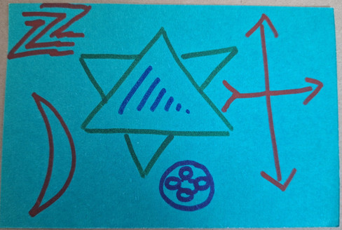 Next, we moved onto a pair’s activity. Katy had us sit back-to-back with someone we didn't know. I chose Scott. Then we were given cards that had symbols, and our task was to describe what we saw, and the other person had to listen and redraw it. For our first attempt I was describing, and Scott was drawing.